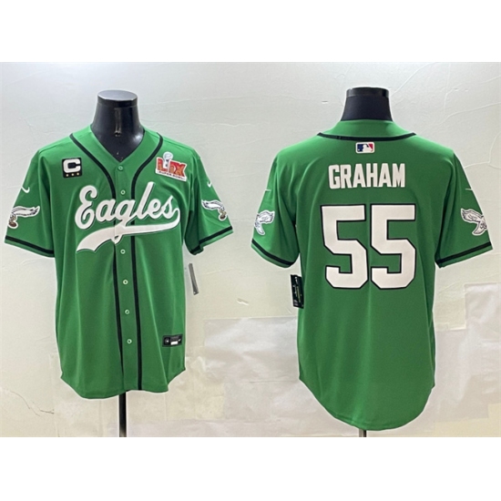 Men's Philadelphia Eagles #55 Brandon Graham Green 2025 Super Bowl LIX And 3-Star C Stitched Baseball Jersey