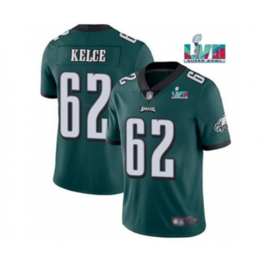 >Men's Philadelphia Eagles #62 Jason Kelce Green Super Bowl LVII Patch Vapor Untouchable Limited Stitched Jersey