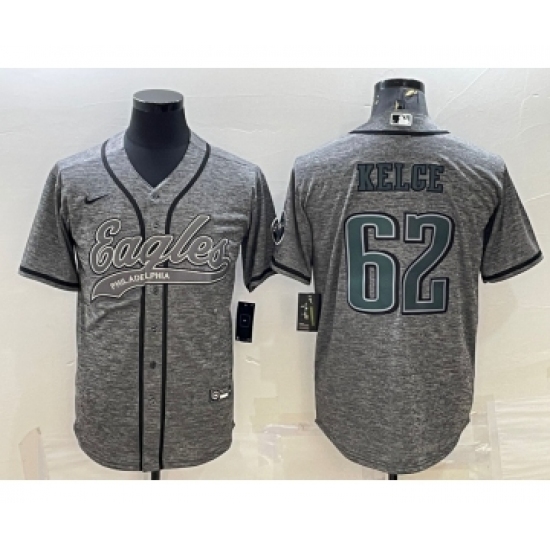 Men's Philadelphia Eagles #62 Jason Kelce Grey Gridiron Patch Cool Base Stitched Baseball Jersey