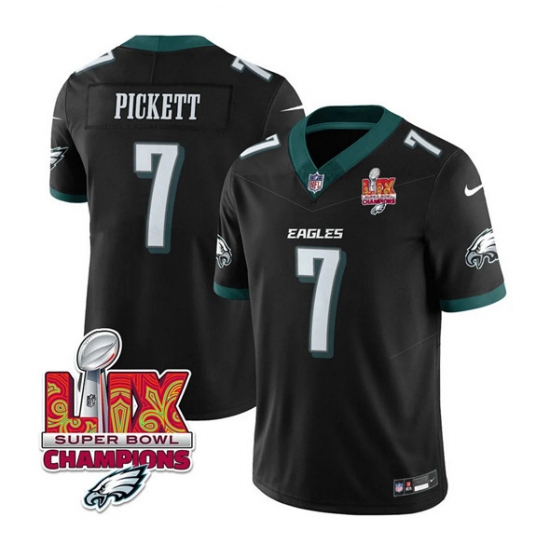 Men's Philadelphia Eagles #7 Kenny Pickett Black 2025 Eagles Logo Super Bowl LIX New F.U.S.E. Vapor Limited Football Stitched Jersey