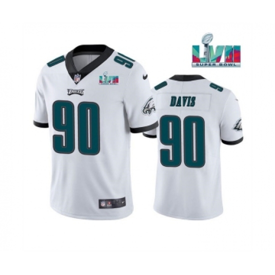 >Men's Philadelphia Eagles #90 Jordan Davis White Super Bowl LVII Patch Vapor Untouchable Limited Stitched Jersey