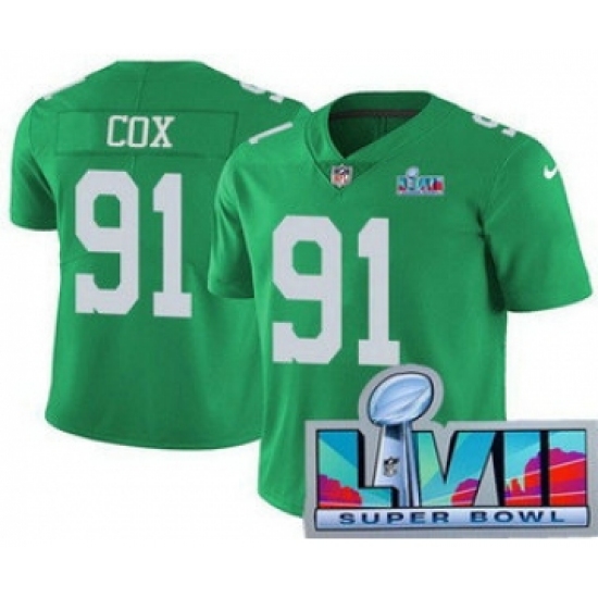 >Men's Philadelphia Eagles #91 Fletcher Cox Limited Green Rush Super Bowl LVII Vapor Jersey