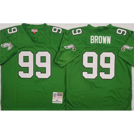 >Men's Philadelphia Eagles #99 Jerome Brown Kelly Green Throwback Football Stitched Jersey