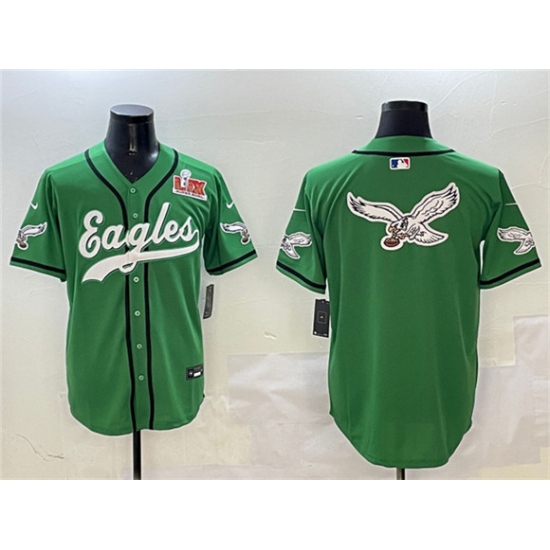 Men's Philadelphia Eagles Team Big Logo Green 2025 Super Bowl LIX Stitched Baseball Jersey