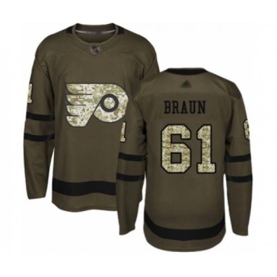 >Men's Philadelphia Flyers #61 Justin Braun Authentic Green Salute to Service Hockey Jersey