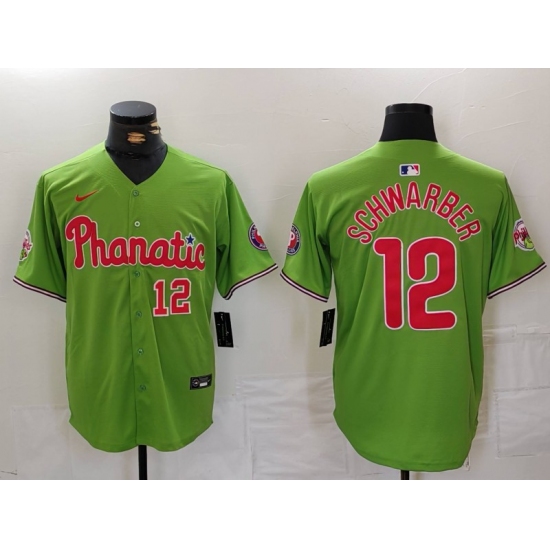 Men's Philadelphia Phillies #12 Kyle Schwarber White Green Cool Base Stitched Jerseys