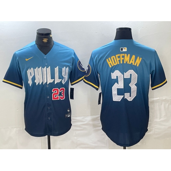 Men's Philadelphia Phillies #23 Jeff Hoffman Blue Number 2024 City Connect Limited Stitched Jersey