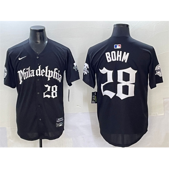 >Men's Philadelphia Phillies #28 Alec Bohm Black Gothic Vapor Limited Stitched Jersey