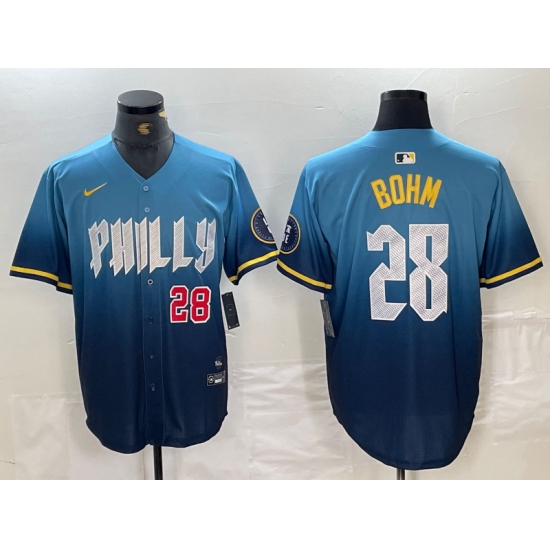 Men's Philadelphia Phillies #28 Alec Bohm Blue 2024 City Player Number Cool Base Stitched Jerseys