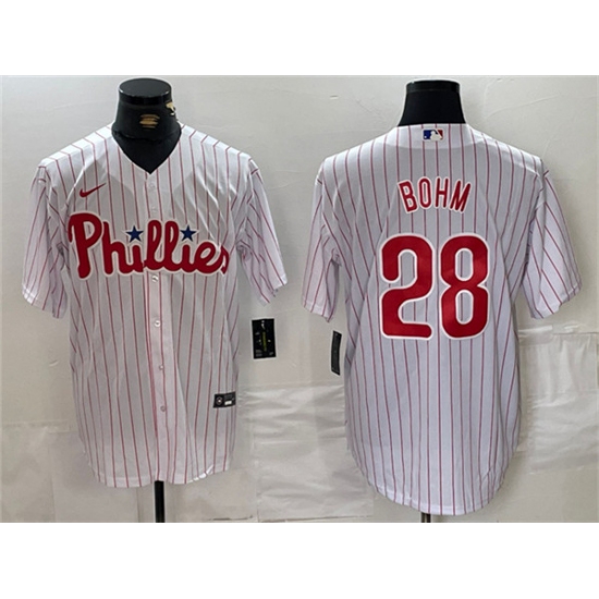 >Men's Philadelphia Phillies #28 Alec Bohm White Cool Base Stitched Jersey