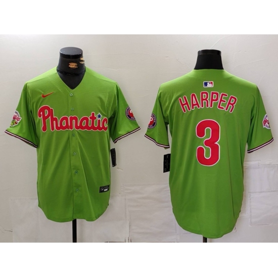 >Men's Philadelphia Phillies #3 Bryce Harper Green With Stitched Cool Base Nike Jersey