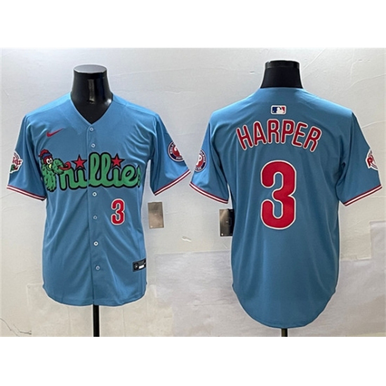 Men's Philadelphia Phillies #3 Bryce Harper Blue 2024 City Connect Limited Stitched Jersey