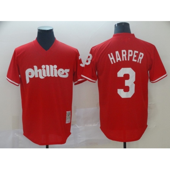 >Men's Philadelphia Phillies #3 Bryce Harper Red Alternate Stitched Baseball Jersey