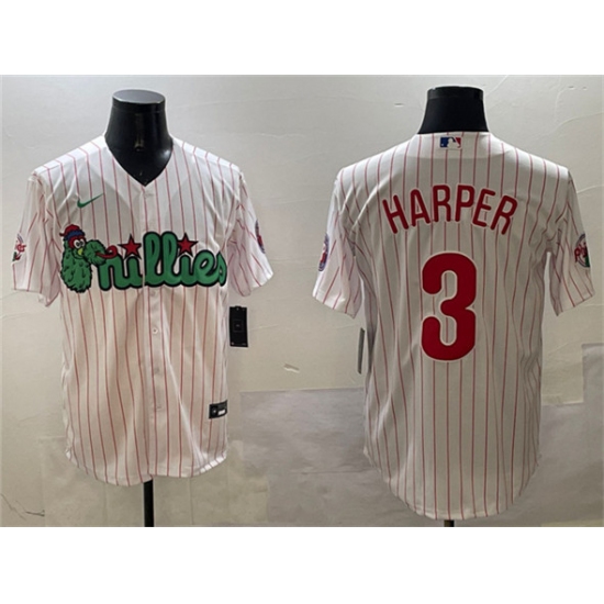 Men's Philadelphia Phillies #3 Bryce Harper White Green Cool Base Stitched Jerseys