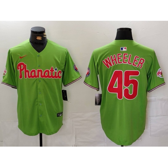 >Men's Philadelphia Phillies #45 Zack Wheeler Green With Stitched Cool Base Nike Jersey