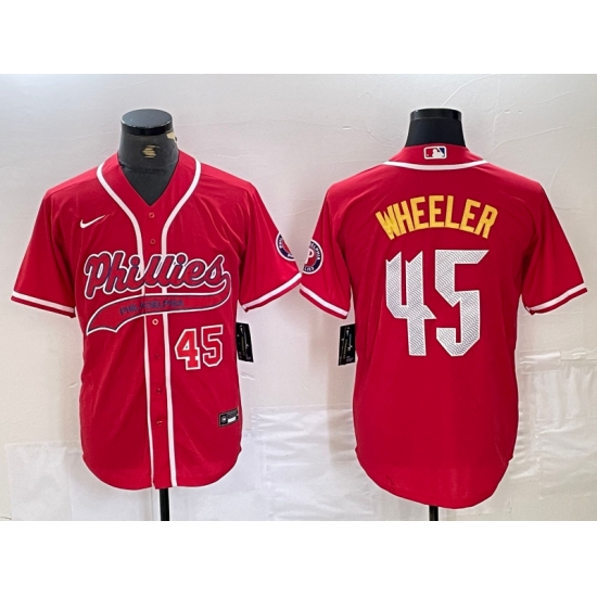 >Men's Philadelphia Phillies #45 Zack Wheeler Number Red Cool Base Stitched Baseball Jerseys
