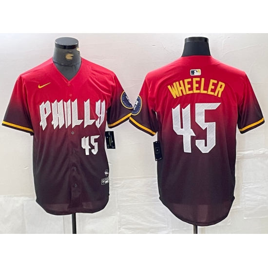 Men's Philadelphia Phillies #45 Zack Wheeler Red 2024 City Player Number Cool Base Jersey