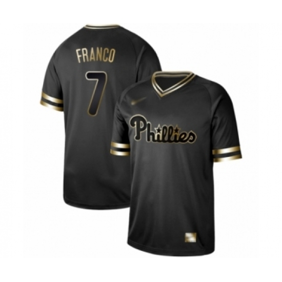 >Men's Philadelphia Phillies #7 Maikel Franco Authentic Black Gold Fashion Baseball Jersey