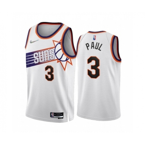 >Men's Phoenix Suns #3 Chris Paul 2022-23 White 75th Anniversary Association Edition Stitched Jersey