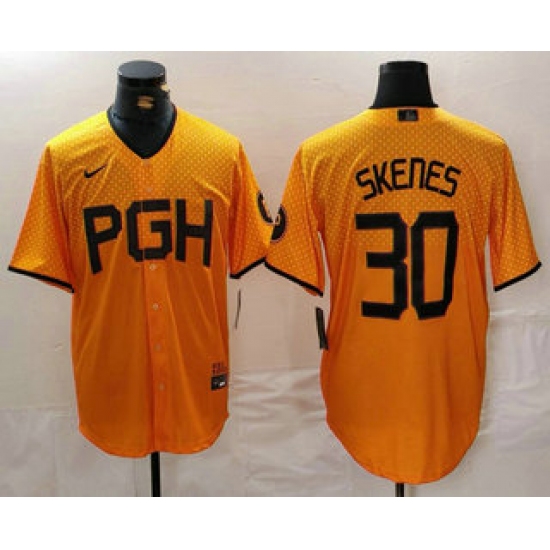 Men's Pittsburgh Pirates #30 Paul Skenes Yellow 2023 City Connect Stitched Jersey