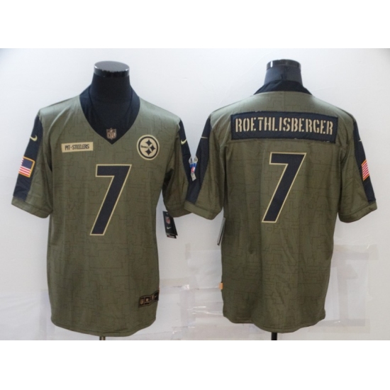 Men's Pittsburgh Steelers #7 Ben Roethlisberger Nike Olive 2021 Salute To Service Limited Player Jersey