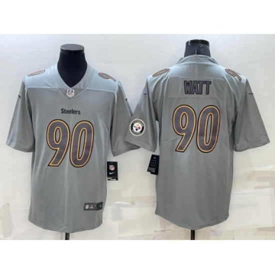 >Men's Pittsburgh Steelers #90 TJ Watt LOGO Grey Atmosphere Fashion 2022 Vapor Untouchable Stitched Limited Jersey