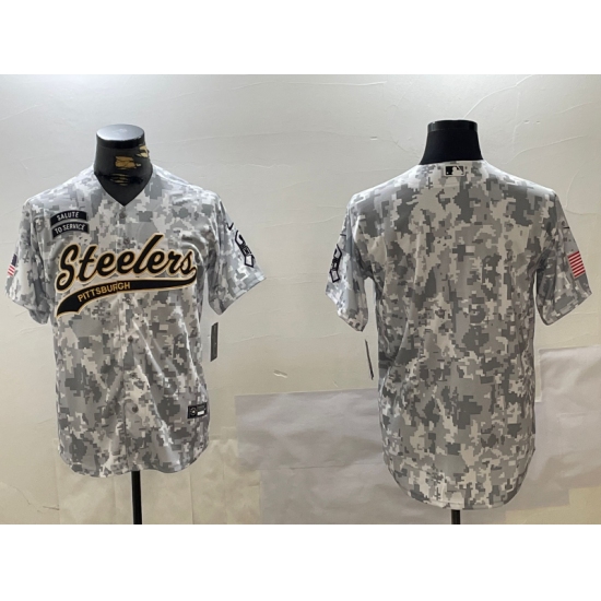 Men's Pittsburgh Steelers Team Logo 2024 Arctic Camo Salute to Service Stitched Baseball Jersey