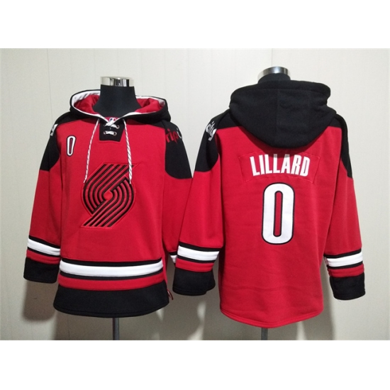 Men's Portland Trail Blazers #0 Damian Lillard Red Lace-Up Pullover Hoodie