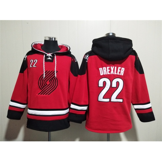 >Men's Portland Trail Blazers #22 Clyde Drexler Red Lace-Up Pullover Hoodie