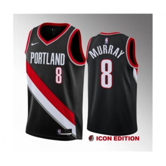 >Men's Portland Trail Blazers #8 Kris Murray Black 2023 Draft Icon Edition Stitched Basketball Jersey