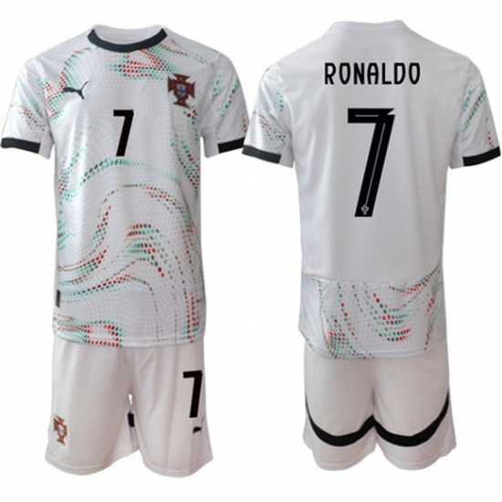Men's Portugal Team #7 Ronaldo 2025 White Away Soccer Jersey Suit