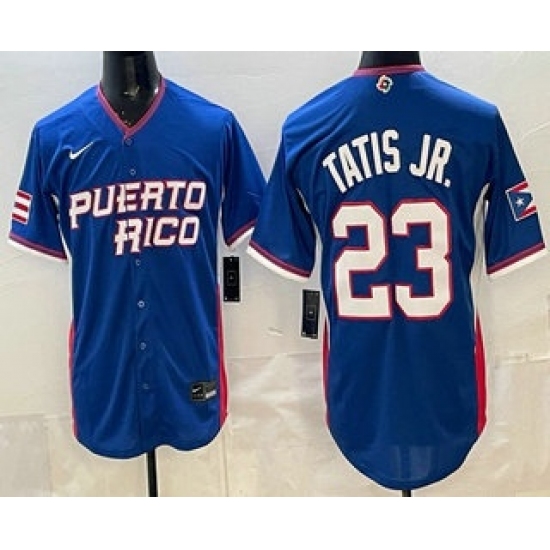 Men's Puerto Rico #23 Fernando Tatis Jr Blue 2026 World Baseball Classic Cool Base Jersey