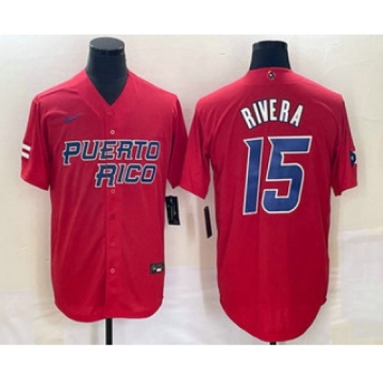 >Men's Puerto Rico Baseball #15 Emmanuel Rivera 2023 Red World Classic Stitched Jersey