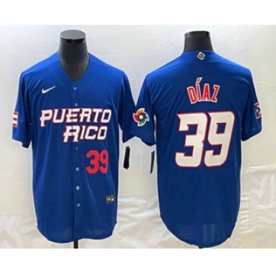 Men's Puerto Rico Baseball #39 Edwin Diaz Number 2023 Blue World Baseball Classic Stitched Jerseys