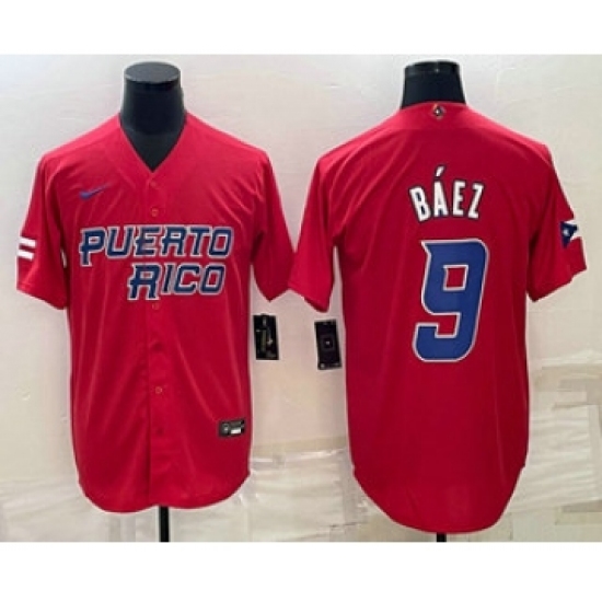 Men's Puerto Rico Baseball #9 Javier Baez 2023 Red World Baseball Classic Stitched Jersey