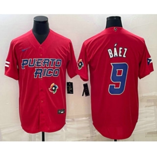 Men's Puerto Rico Baseball #9 Javier Baez 2023 Red World Baseball Classic Stitched Jerseys