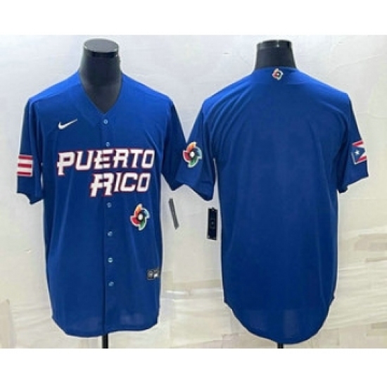 >Men's Puerto Rico Baseball Blank 2023 Royal World Classic Stitched Jerseys
