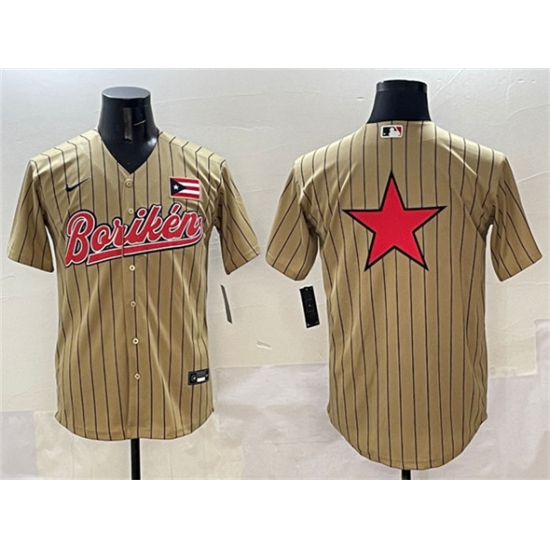 Men's Puerto Rico Baseball Tan 2023 World Baseball Classic Team Big Logo Stitched Jersey