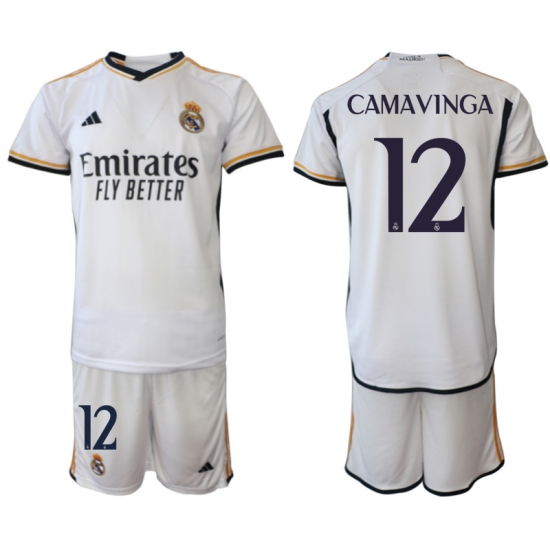 Men's Real Madrid #12 Camavinga 2023-24 White Home Soccer Jersey