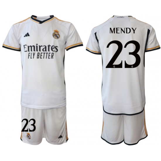 >Men's Real Madrid #23 Mendy 2023-24 White Home Soccer Jersey
