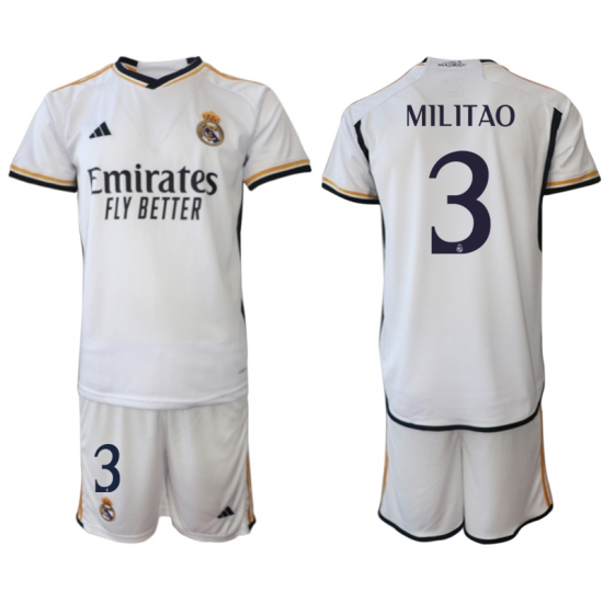 >Men's Real Madrid #3 Militao 2023-24 White Home Soccer Jersey