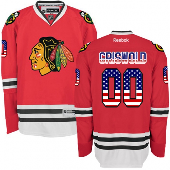 Home>NHL>Chicago Blackhawks>Clark Griswold>Men's Reebok Chicago Blackhawks #00 Clark Griswold Authentic Red USA Flag Fashion NHL Jersey