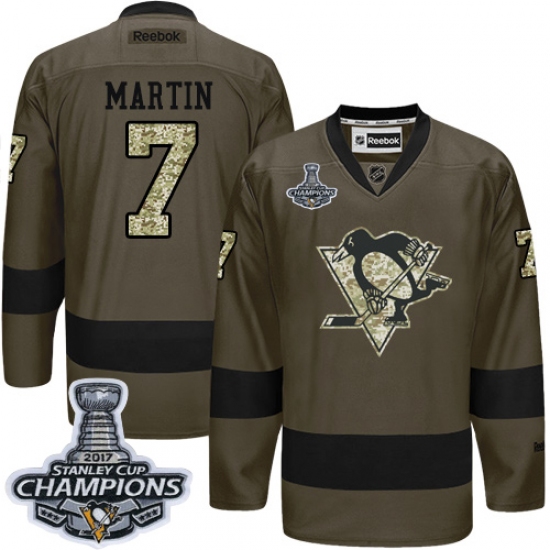 Home>NHL>Pittsburgh Penguins>Paul Martin>Men's Reebok Pittsburgh Penguins #7 Paul Martin Authentic Green Salute to Service 2017 Stanley Cup Champions NHL Jersey