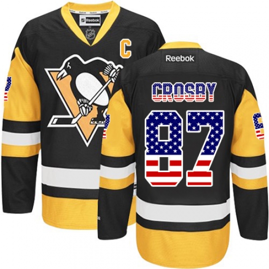 Home>NHL>Pittsburgh Penguins>Sidney Crosby>Men's Reebok Pittsburgh Penguins #87 Sidney Crosby Premier Black/Gold USA Flag Fashion NHL Jersey