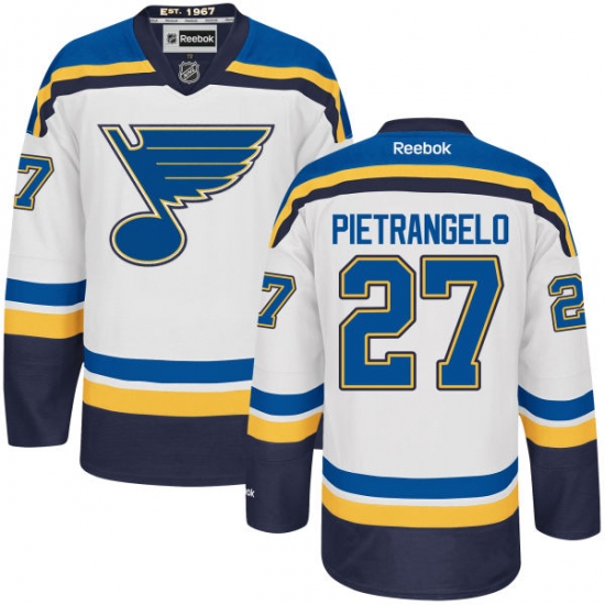 Men's Reebok St. Louis Blues #27 Alex Pietrangelo Authentic White Away NHL Jersey