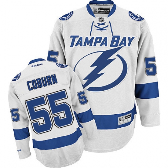 Home>NHL>Tampa Bay Lightning>Braydon Coburn>Men's Reebok Tampa Bay Lightning #55 Braydon Coburn Authentic White Away NHL Jersey