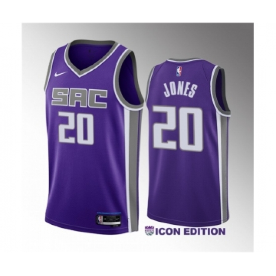 Men's Sacramento Kings #20 Colby Jones Purple 2023 Draft Icon Edition Stitched Jersey