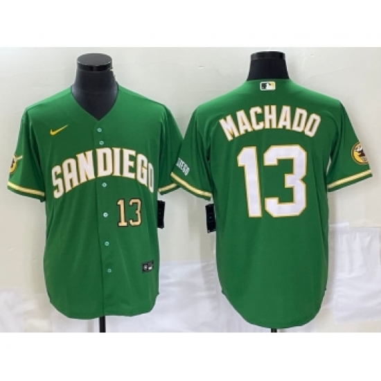 Men's San Diego Padres #13 Manny Machado Number Green Cool Base Stitched Baseball Jersey