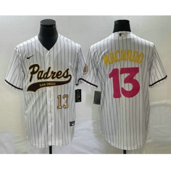 Men's San Diego Padres #13 Manny Machado White Pinstripe 2023 City Connect Cool Base Stitched Jersey