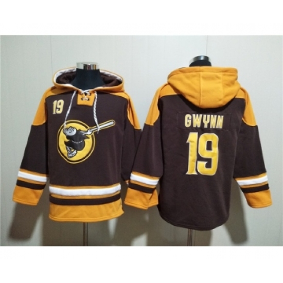 Men's San Diego Padres #19 Tony Gwynn Brown Gold Ageless Must-Have Lace-Up Pullover Hoodie